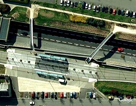 Saking terpesona dengan Busway Nantes dan busgandeng Mercedes Citaro-nya, saya ingin berbagi hasil jalan-jalan ke Nantes pakai google : Ini halte yang sama difoto lewat satelit. Dengan bantuan Google Earth kita bisa melihat dan belajar banyak ke seluruh dunia tanpa harus bangun dari kursi... Di lihat pada petanya, hanya ada tiga Park and Ride. Tapi kalau mengintip lewat Google Earth, paling sedikit ada 7. Coba tengok. Namanya BusWay, arti harfiahnya ga jadi soal. Kita juga sering begitu, seperti Metro Mini, Gudang Garam, Kompas, banyak...