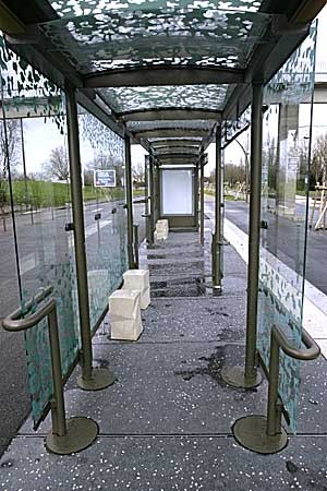Tapi haltenya jauh lebih sempit dibanding di Jakarta. Barangkali karena headwaynya cuma 4 menit, dan bisa 200 penumpang sekali angkut. Menariknya, halte dipandang sebagai urban furniture. Dan karya para perupa Prancis pun bisa dinikmati dan dipakai untuk duduk, memarkir sepeda atau hiasan. Gagasan yang genial, karya seni difungsikan dalam kehidupan sehari-hari, tidak hanya diam di sudut ruang pamer, hanya bisa dinikmati oleh pengunjung galeri.Di Nantes bukannya tidak ada jembatan penyebrangan. Ini desainnya. Lihat bagaimana pendekatannya: bukan manusianya diminta naik, tapi untuk mobil-mobil dibuatkan underpass. Ini lebih mahal ya daripada membuat jembatan penyeberangan orang.